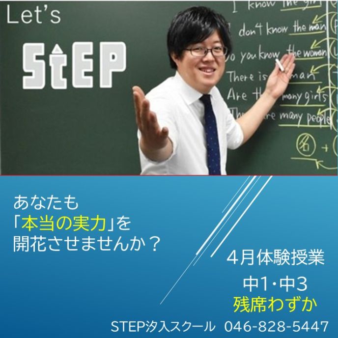 4月入会説明会を以下の日程で実施します! 「ステップってどんな塾?」「ステップのカリキュラムは?」「勉強法についての相談にのってほしい!」など、盛りだくさんの内容でお届けします! お問い合わせの上、ぜひお気軽にスクールまでお越しください。