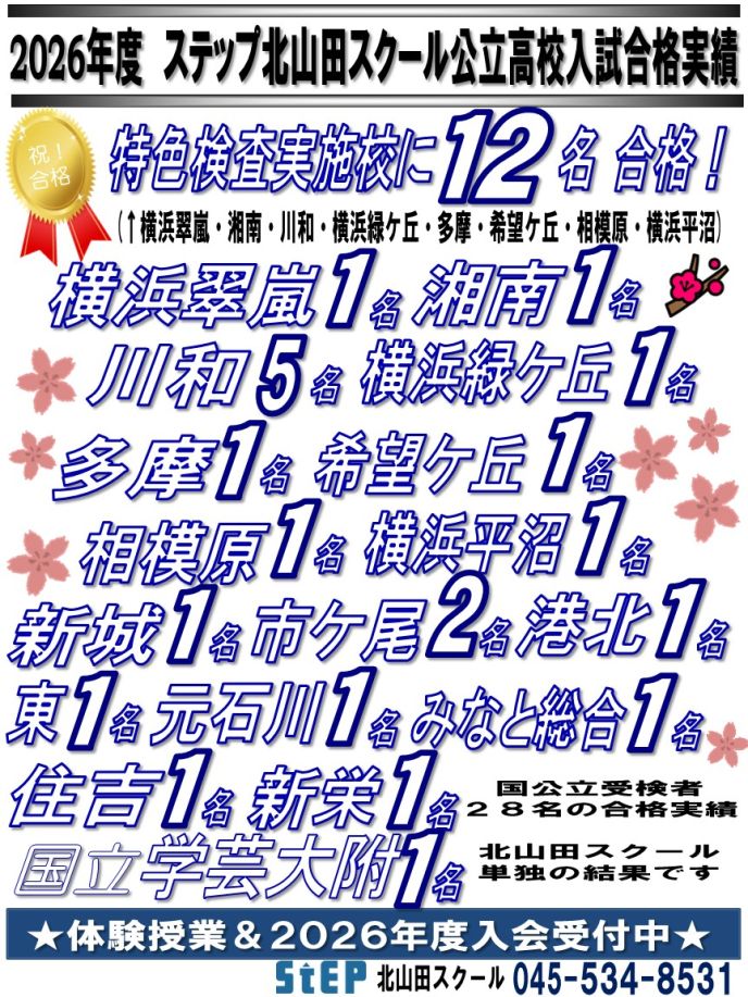 【超速報】2026年度 北山田スクール入試結果