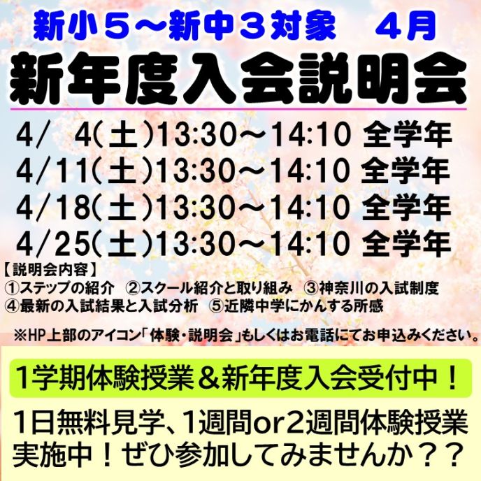 ★新中2&新中3向け説明会開催★ 3/30(火)更新しました。