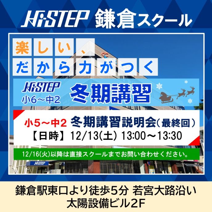 12/16(火)以降は直接スクールまでお問い合わせください。