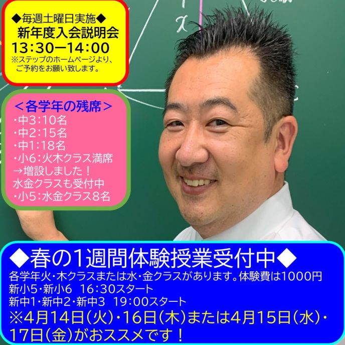 ◎4/18(土) 入会説明会 新小5~新中3対象(30分)