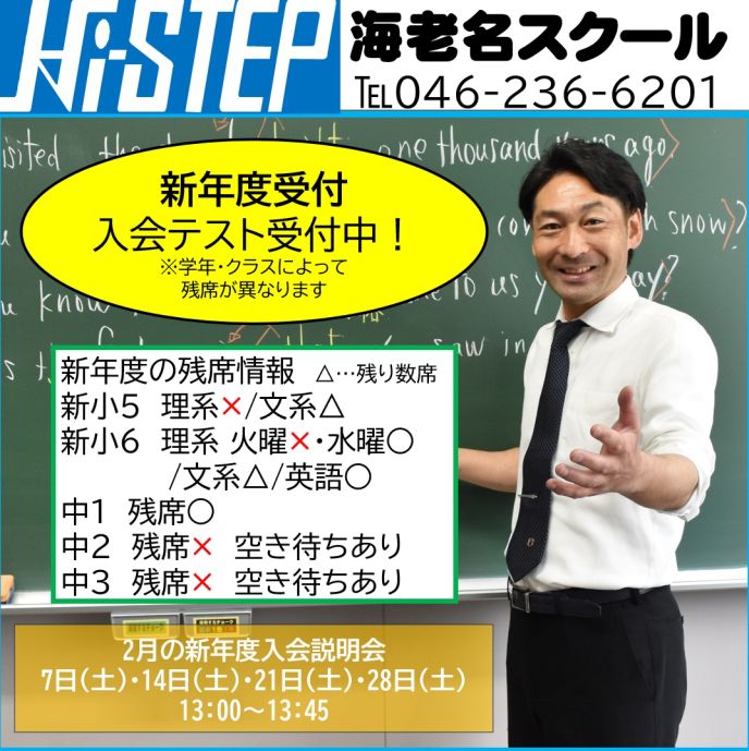 ※ 満席の学年も、空き待ち登録はお受けしています。