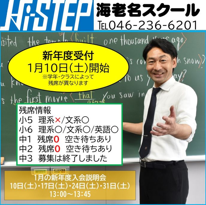 ※ 満席の学年も、空き待ち登録はお受けしています。