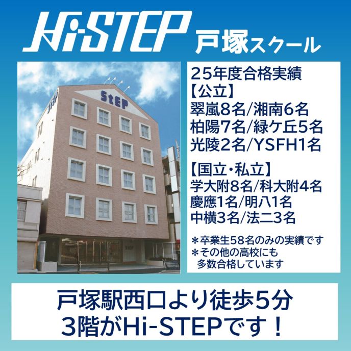 ※ハイステップ戸塚スクール卒業生(58名)のみの実績です。上記以外の高校にも多く合格しています。